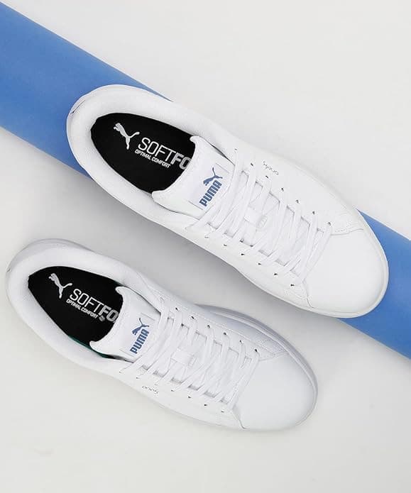 The Puma Smash One8 V2 sneaker features a stylish design with a brand color combination of White and Palace Blue. Crafted from high-quality textile material, this sneaker offers both comfort and durability. It has product dimensions of 25.5 x 19.5 x 8 cm and weighs 700 grams. First available on December 29, 2022, the sneaker carries the item model number 38468302 and ASIN B0BRBJ2VPP. Manufactured in India by Puma at MOCHIKO SHOES, Dehradun, it is packed and imported by Puma Sports India Pvt Ltd. The net quantity of the product is one pack. For maintenance, it is recommended to wipe the sneaker with a clean, dry cloth to ensure longevity.