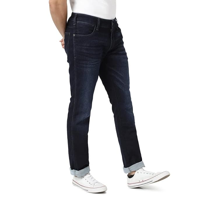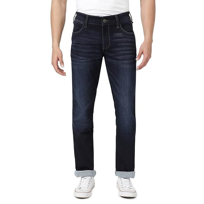 These Wrangler men's jeans feature a low-rise, slim fit design in a light indigo wash for a modern yet classic look. Made from high-quality denim, they offer comfort and durability for everyday wear. The jeans come with a button and zip closure, belt loops, and five pockets, making them both stylish and functional. Designed for versatility, they pair well with casual and semi-formal outfits.